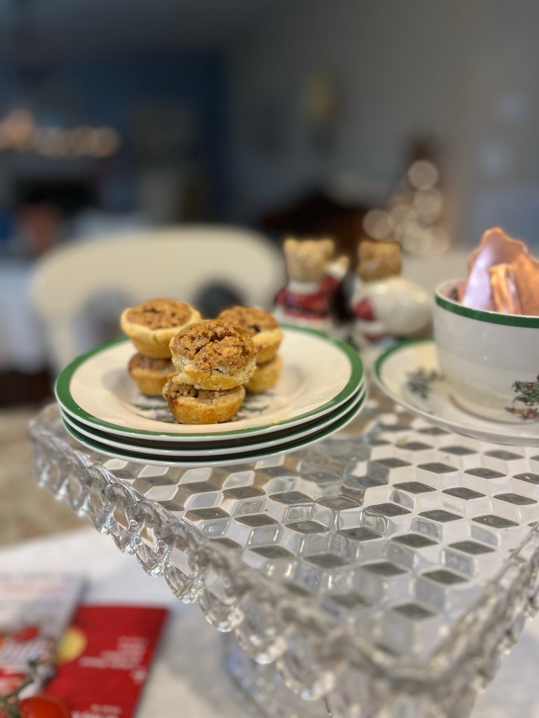 For many years I have been making Pecan Tarts at Christmas . This is a taste of Home recipe that deserves to be repeated as a family tradition because they are such a special treat! They taste exquisite, yet are very easy to make. The pastry only has four ingredients and is a simple as rolling a ball of play dough! The pecan filling is perfection. Just look…