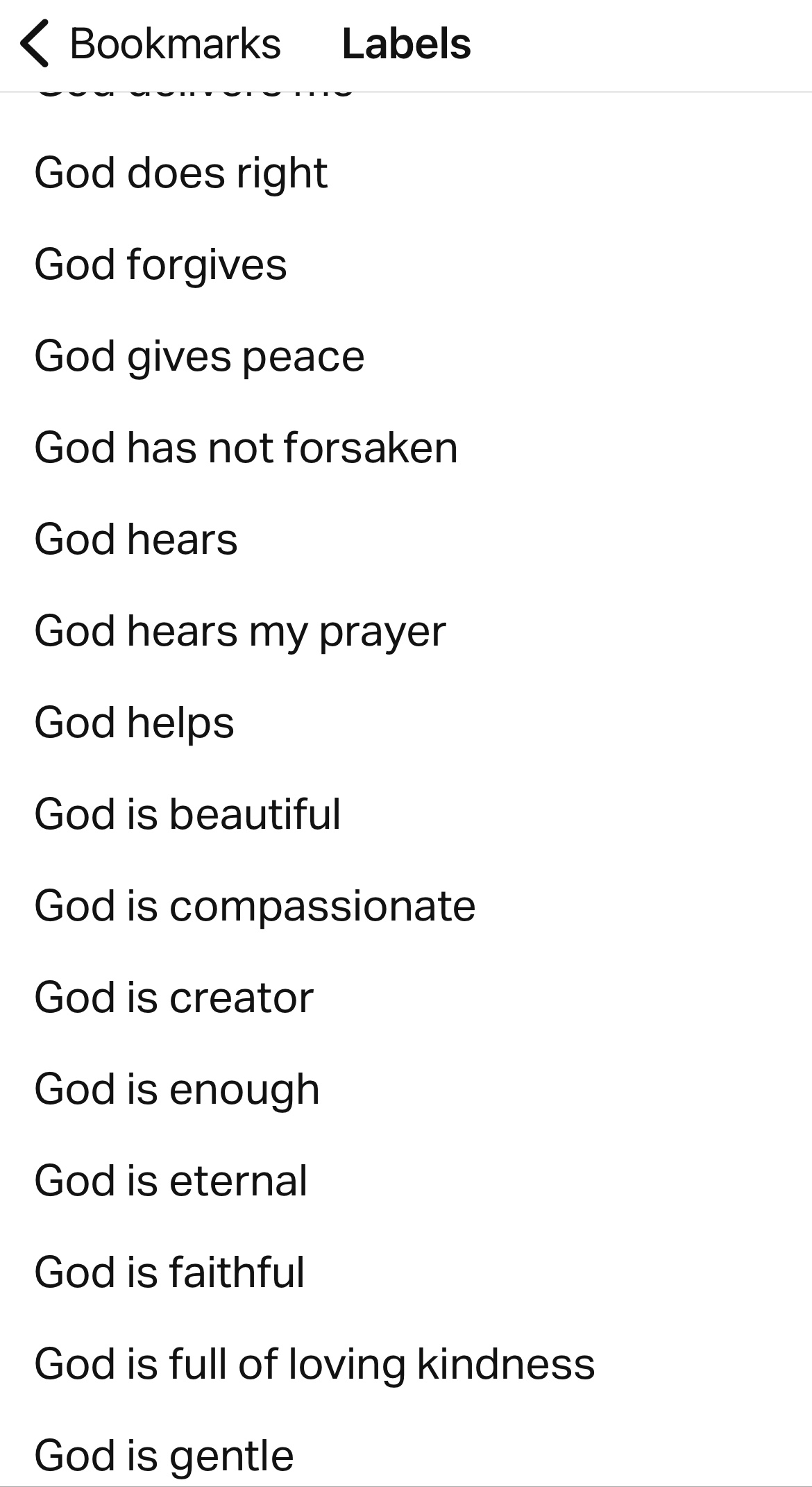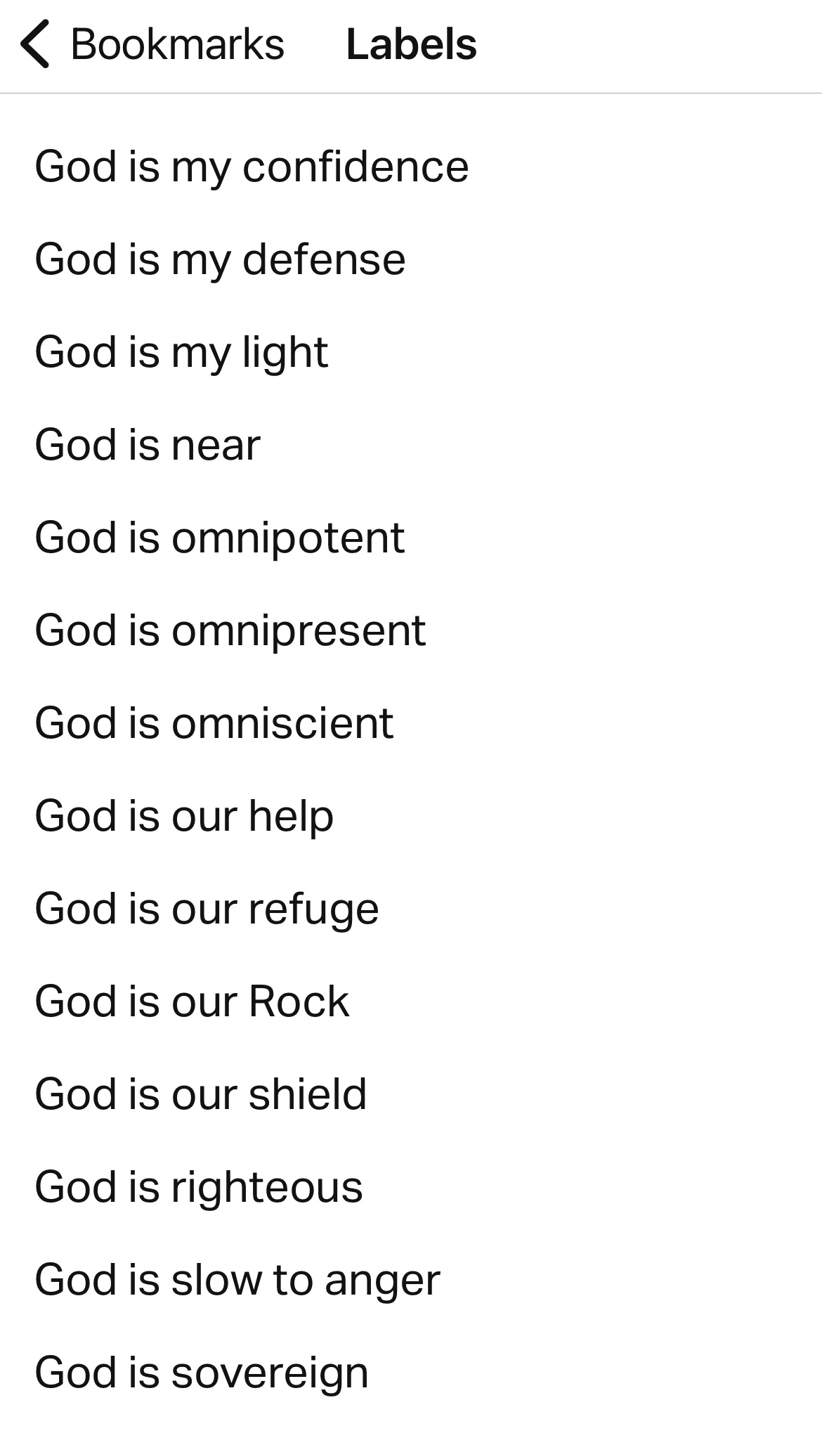 As I read each day, I looked for the character of God. Rather than looking for something that I can apply to my life, or a “feel good” passage, I wanted to learn more about Who my God is. I tried to pay close attention to what I learned about Him, learning that HE is the hero of every story in the Bible. Using the You Version tools, I bookmarked the verses (here’s how) that revealed His character. Here are a couple screen shots of my bookmarks.