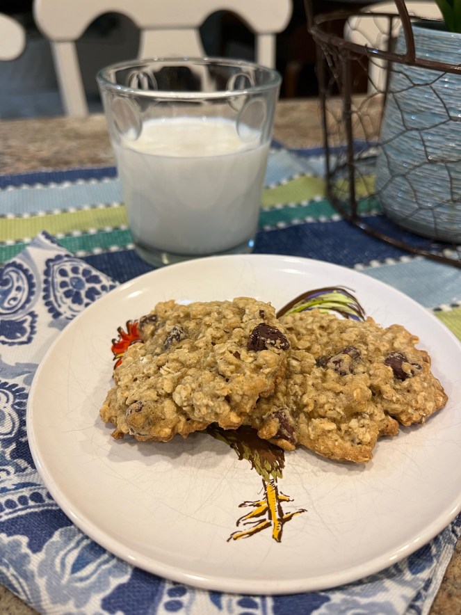 I had a fun baking afternoon last week. I whipped up a batch of Low-Fat Oatmeal Chocolate Chip cookies. When I told my daughter Alli what I had made she said,