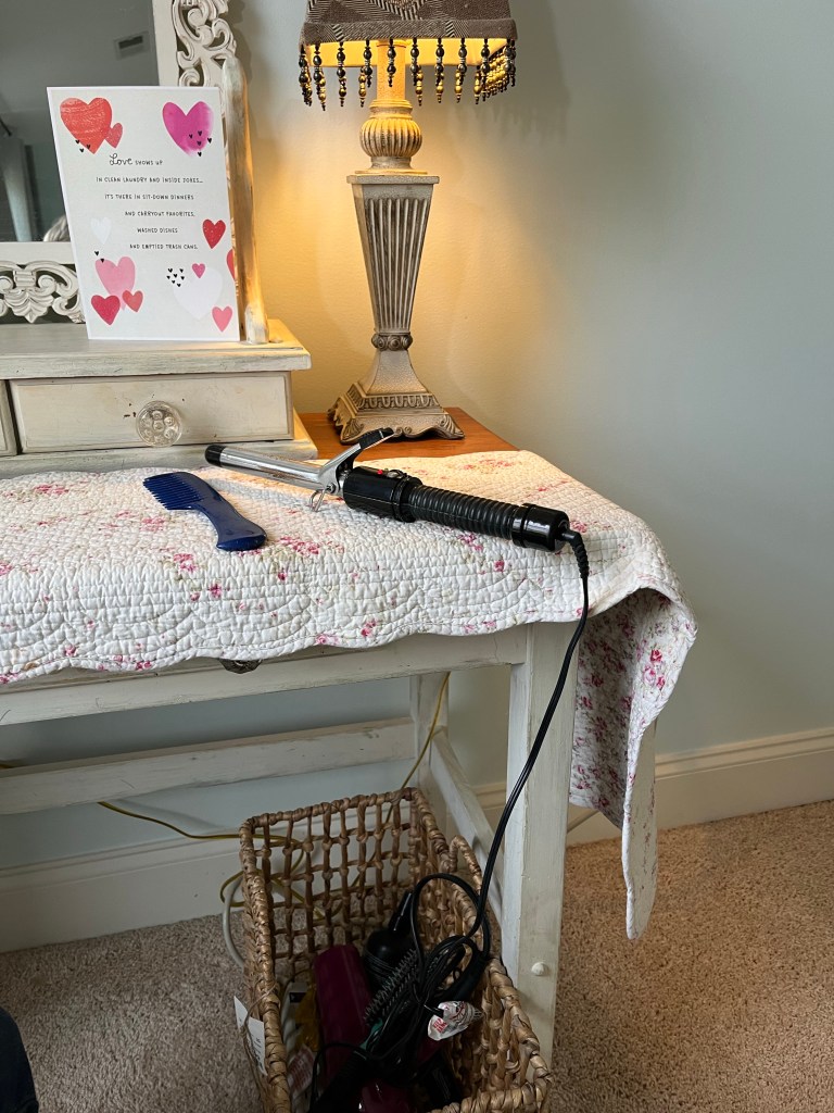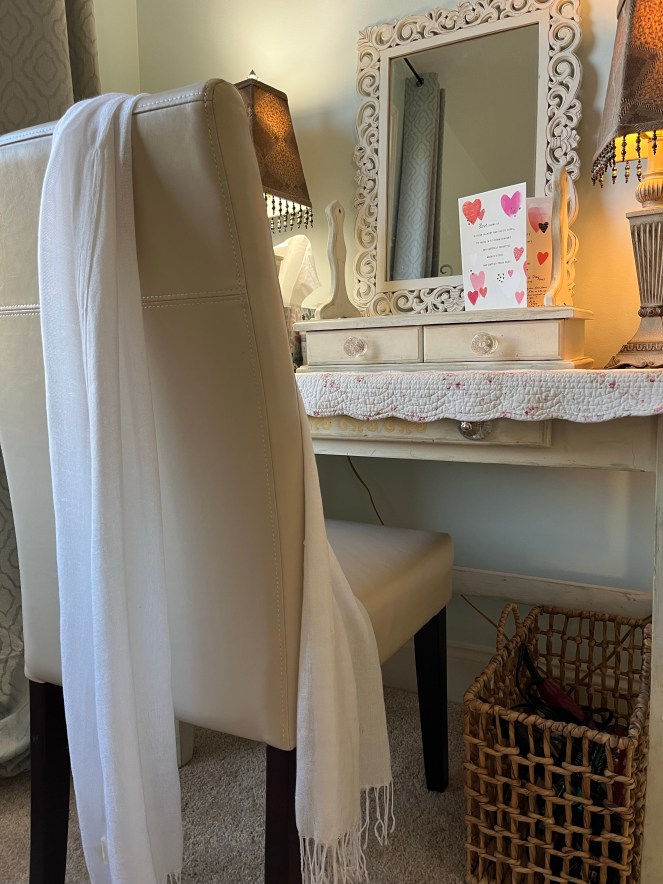 Getting ready in the morning is SO much easier now! I just slide the basket out from under my dressing table (a homemade treasure from my late father-in-law), and easily pull out whatever I need.