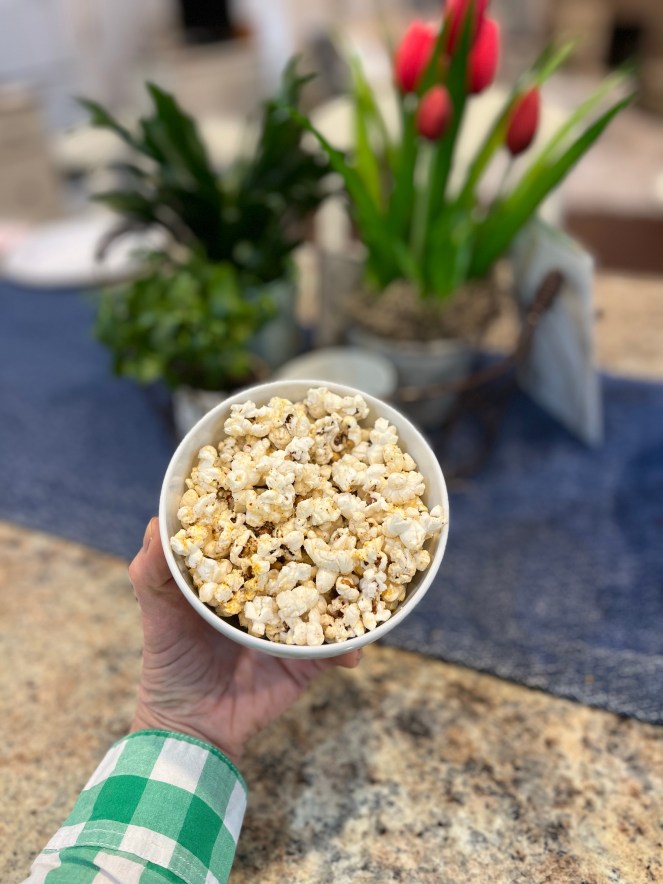 My kids ALL favored the “fresh-off -the-stove” popcorn lightly salted and drizzled with melted white chocolate in a very large bowl 😆