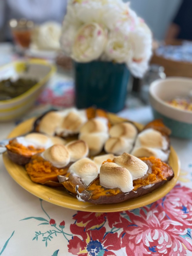 I got a good deal on Pork Tenderloin at Kroger last week, so I decided to make the Balsamic Glazed Pork Tenderloin that I’ve share here before. Then I got stumped. What sides should I make? It’s my norm to go searching for a recipe, rather than falling to a tried and true favorite. Not sure why, but that’s the way I roll. I found a recipe for Individual Stuffed Sweet Potato “Casseroles,” which I knew would pair well with the pork. They were so good! You simply bake the potatoes and add some special ingredients inside the skin. It was so easy, and also not overly sweet. Wow. I will be making these on repeat!