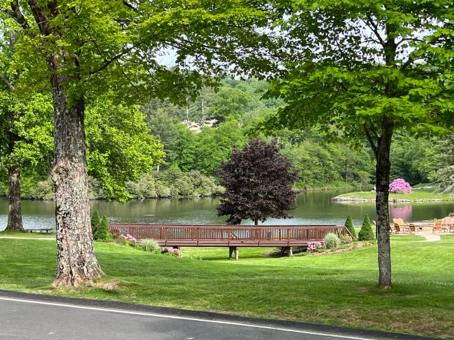 As we were making our way back home, we looked for a place for dinner near Boone, NC. Monday’s are days when many restaurants are closed, but we found that a special place in Blowing Rock we’d been to a couple times before was open.! Woo hoo! The setting is gorgeous and the food is great. This was a sweet blessing. We were seated near the window where we could see the lake, the swans and the flowers on their property. We had purposeful conversation and a wonderful dining experience at Timberlake Restaurant.