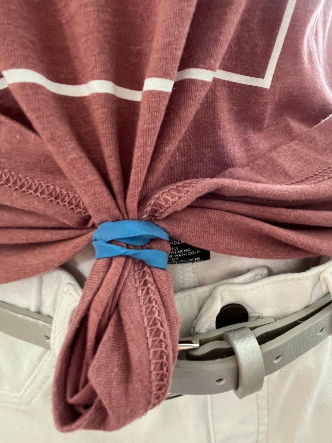The shirt above was simply gathered underneath and secured with a rubber band.