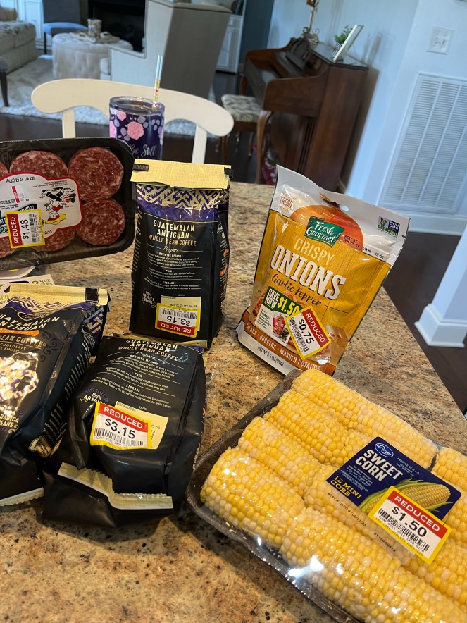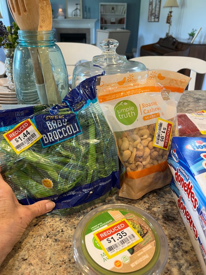 When you’re grocery shopping, be on the lookout for those mark down stickers. My Kroger had some of these items in their “normal” place. Other items were piled into a cart, filled with marked downs. I walk slowly and carefully watch for those stickers. Then I check the expiration date. The vitamins don’t expire until September of 2024. The donuts date is next week, so I popped them into the freezer to keep them fresh. Everything I got had plenty of time to still be fresh and deliciously safe!