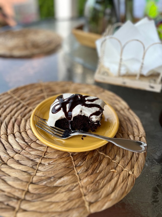 This makes a 9×13 pan full of wonderful cake! I had leftovers and put them in the freezer to use later in the week, and it froze beautifully! So IF you have any left, you can tuck it away to be enjoyed later!