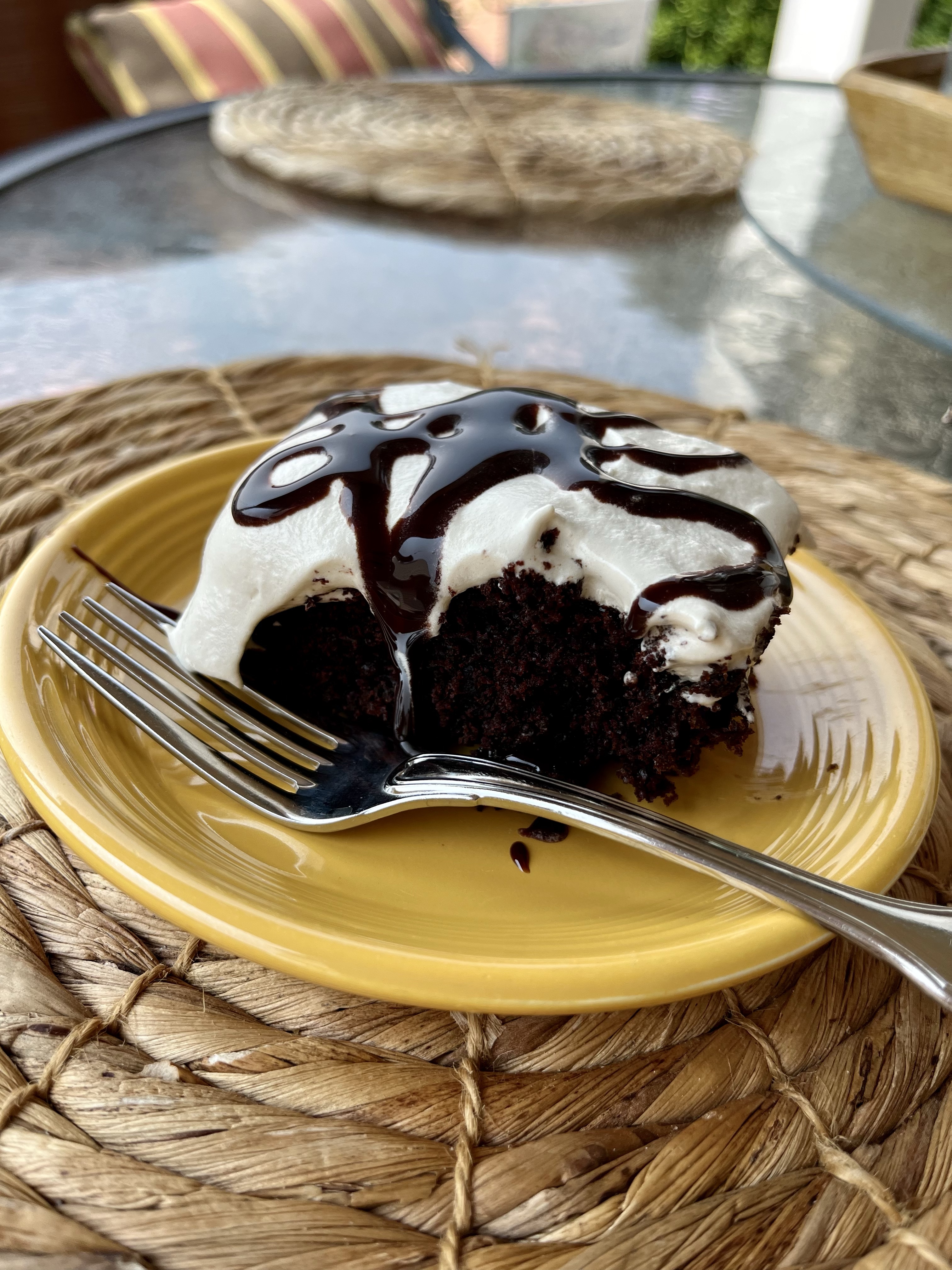 This makes a 9×13 pan full of wonderful cake! I had leftovers and put them in the freezer to use later in the week, and it froze beautifully! So IF you have any left, you can tuck it away to be enjoyed later!
