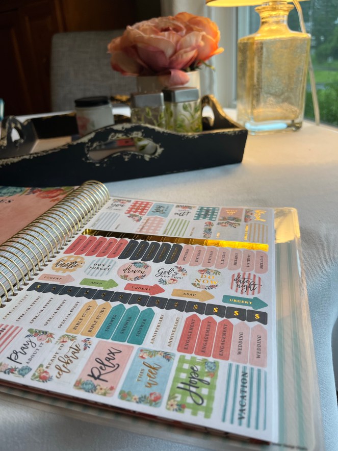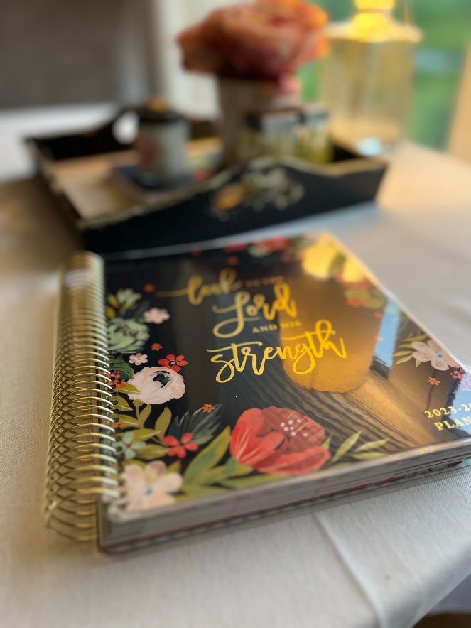 Lastly, I found an item that was getting ready for the shelves – an 18-month planner book that looks a LOT like my Happy Planner, for only $15. I’m excited to use it beginning tomorrow (how is it already July?). It’s so beautiful on the outside as well as the inside. It has nice, big squares for planning, monthly prayer requests and birthdays, stickers, a pocket, and monthly goals/plans.