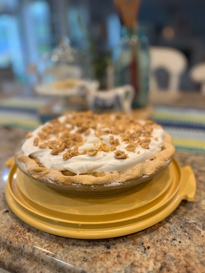 When I made this pie recently it was for a funeral dinner, and it disappeared very quickly, so I never got a picture of a slice of pie. But I was happy our guests enjoyed it! If you love peanut butter, you’re going to love this pie! I can’t believe I let this recipe sit for so long! I will be making it again the next time I need a yummy cream pie!