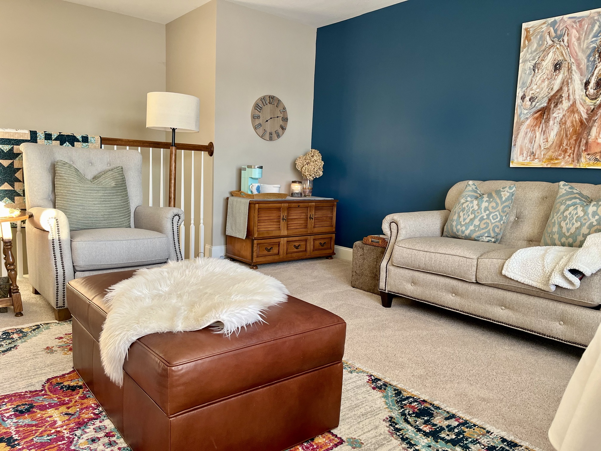 When I took that picture, I knew the pieces would look perfect there! Then my husband and I moved the pieces around without having to move more than once!