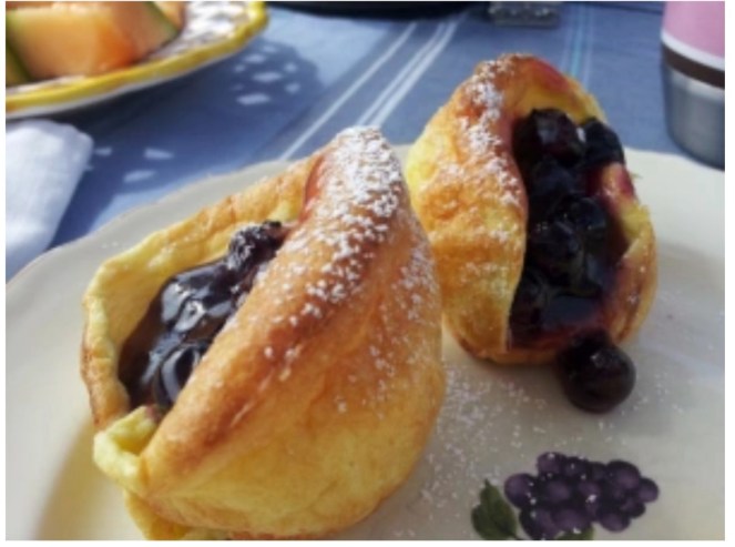 If you love pancakes, but hate standing there taking the time to pour and flip them one at a time, then the recipe I’m sharing today for German Pancakes is going to make your heart happy! These are made in muffin tins and baked in the oven. They puff up and turn into the perfect little “bowl” for a Blueberry sauce to get spooned into! It couldn’t be easier or more delicious!