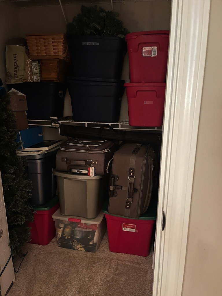 The closet in our guest room is our only space for storage. Suitcases, seasonal decor and those kind of things are stored in here. **Cough** Cough** It had gotten out of control!