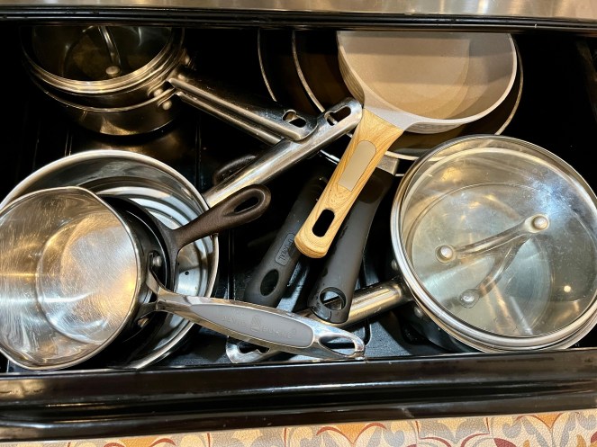 - Clean pans – Use a Brillo pad to clean off the bottoms of your skillets and baking pans.