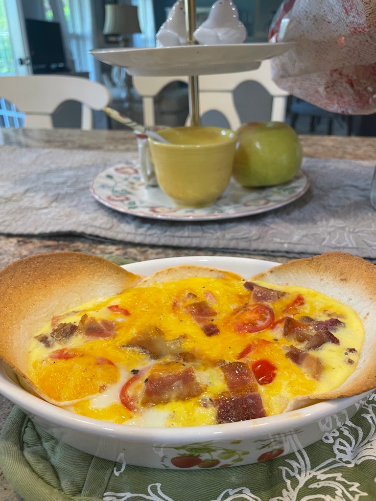 You can make these in a large or small pan, depending on your need. I made a small one in a glass dish and it made two servings.