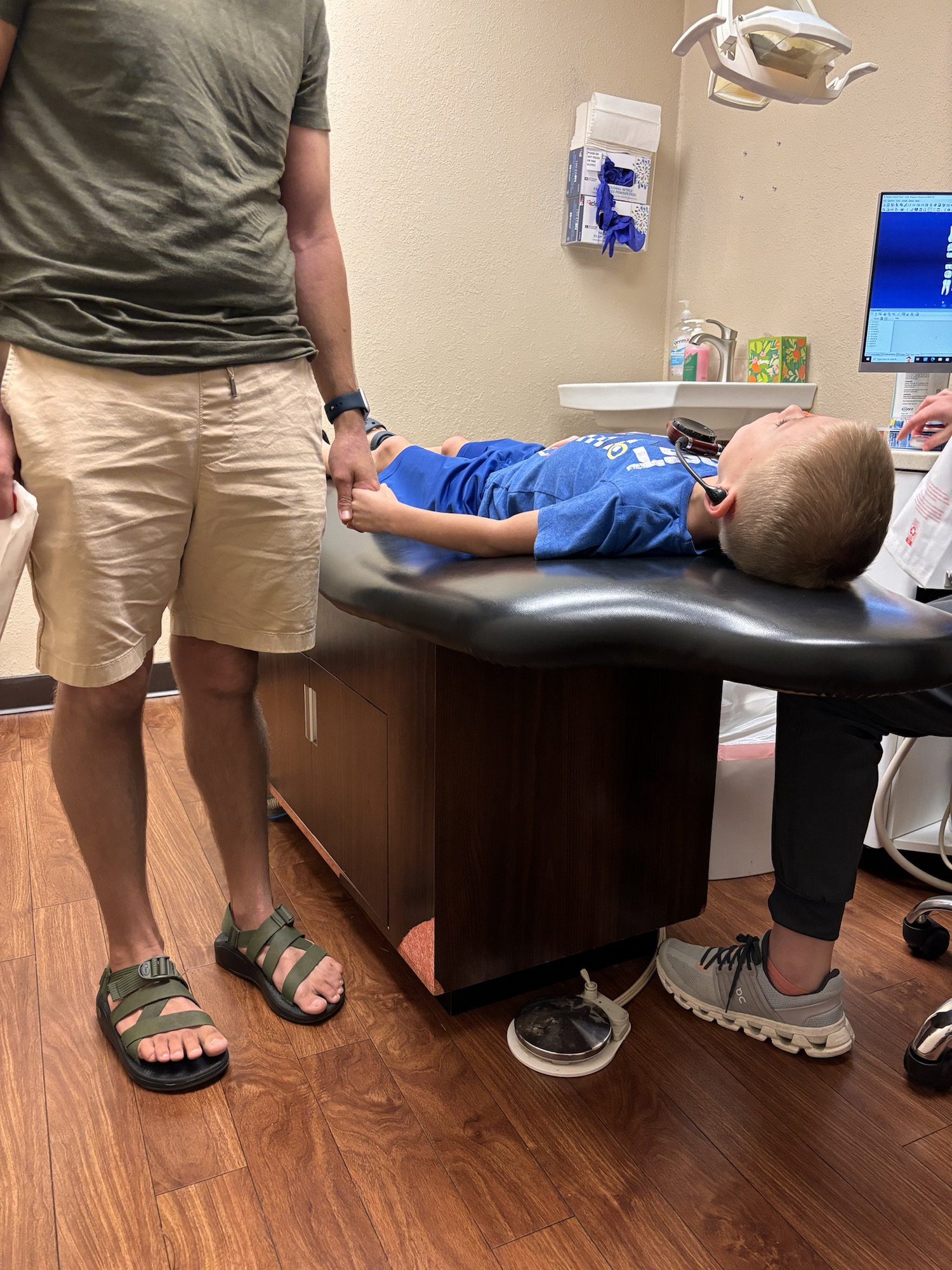 One of my grandsons was having his teeth cleaned and examined at the pediatric dentist office ( huge trial for any child!). His mommy texted to tell me that he was feeling a little anxious. Then she sent this picture that made my heart smile, not only for our grandson, but also for the truth that God brought to my heart.