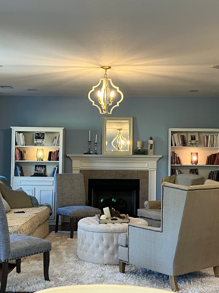 However, when it was time to hang the light, I realized it was a better size for the living room, and the living room’s fixture was better for our bedroom, Here’s a tip I had to learn – It’s tempting to keep everything in the same place or room where you initially put it, but you need to be open to moving it elsewhere. Whether it’s a light fixture or a cabinet, allow yourself to move it into to a different room.