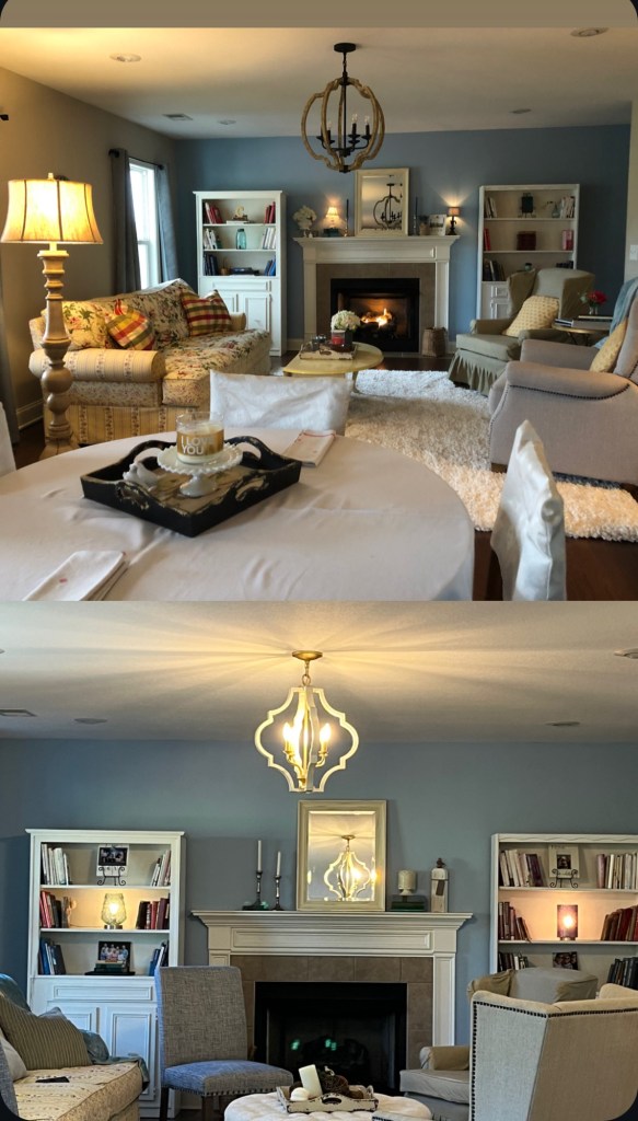 I knew I wouldn’t be happy with a tiny light hanging from a cathedral ceiling, so I made the switch!