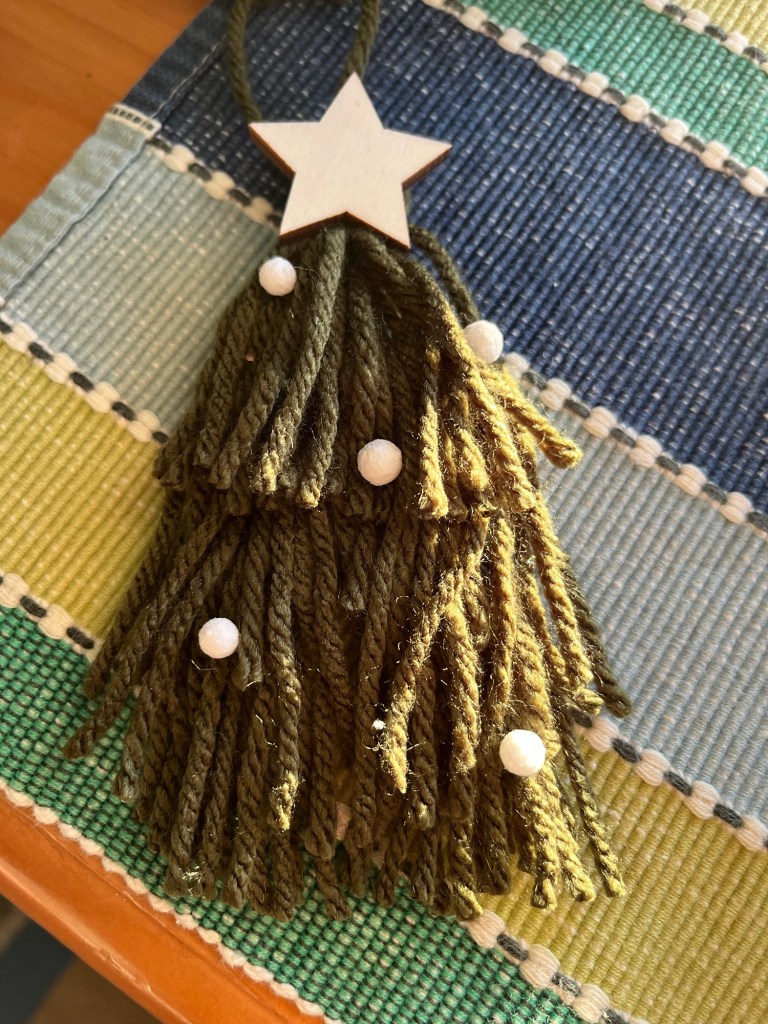I don’t like making a craft and then trying to find a place to put it. Recently I found and made a cute Christmas craft that you can actually use. This is a Christmas Tree Tassel. It takes about 15 minutes to make. Look at this…