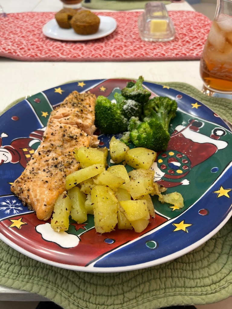 I had pumpkin muffins that I had baked and put in the freezer that were a delicious addition to this meal. I never regret preparing ahead of time! This menu can help you, especially during these busy Christmas days. You don’t need to go out; just make a simple sheet pan dinner!