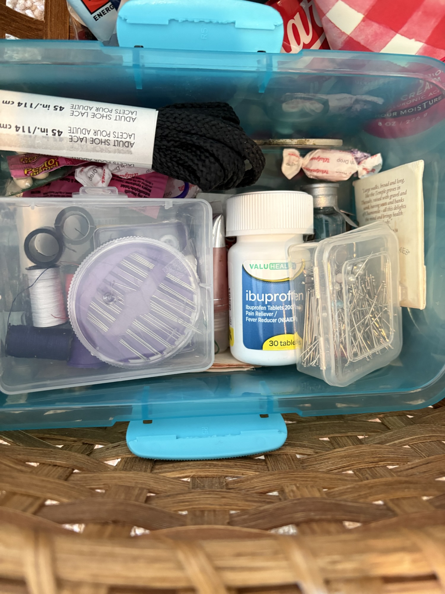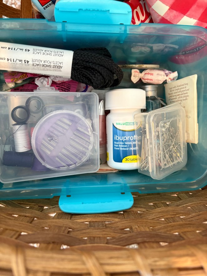 2. I have a smaller container inside for the little items. That way I’m not digging down trying to find them. Those items would include: