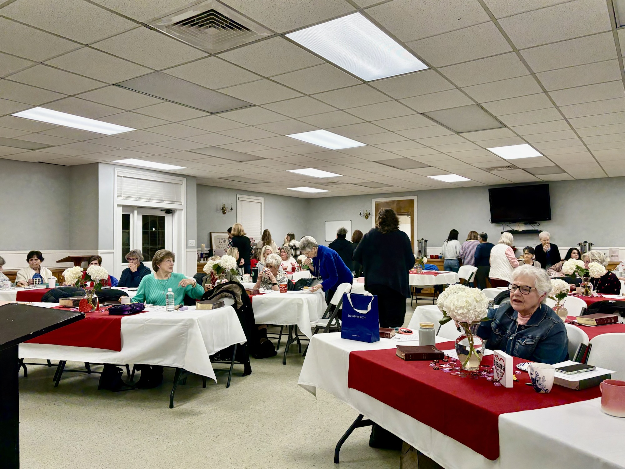 For the women’s session the room was set up so pretty. They invited the ladies to each bring a mug where they could choose from a variety of hot beverages to fill up their cups. Each lady also brought a sweet treat to share. It was a wonderful time of fellowship.