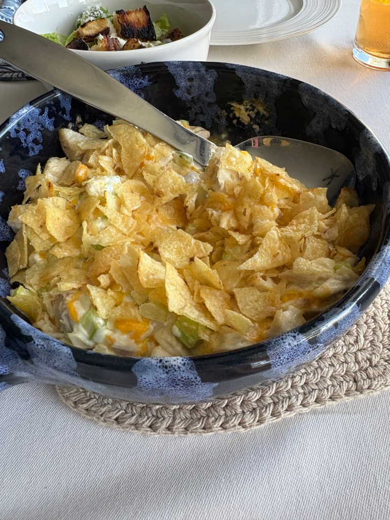 The flavors are so delicious! I added a Caesar Salad to complete the meal. I put the dish together, (except for the potato chip topping) on Saturday night. When we got home from church, I added the chips on top and then baked it. It made for a great Sunday dinner!
