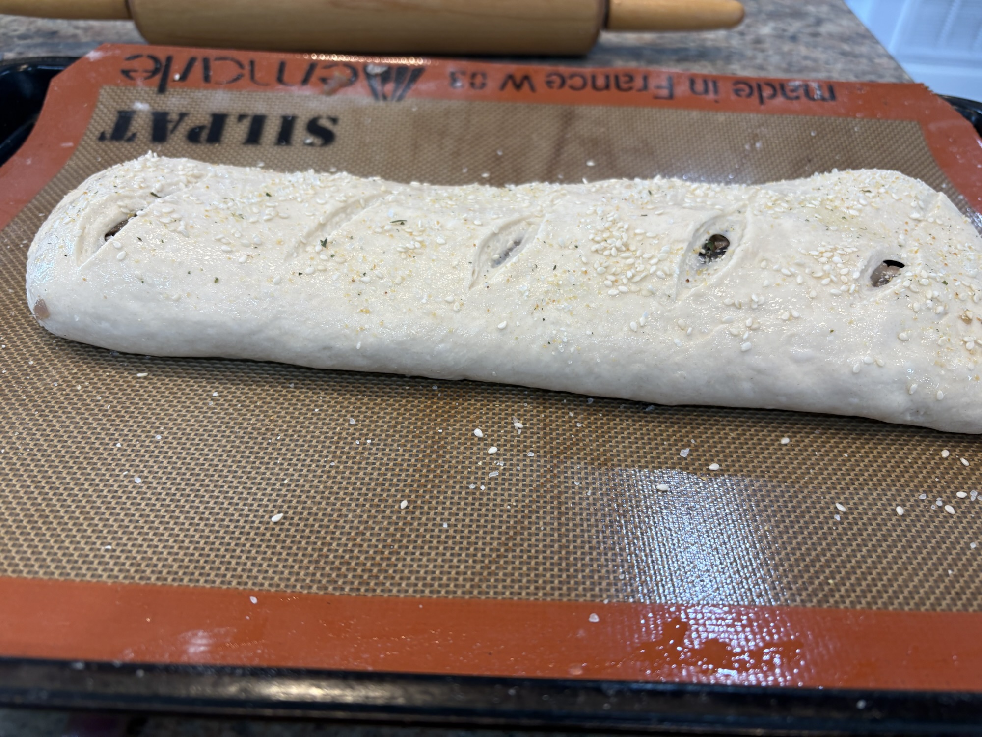 - Cut small slats in the top and brush with egg white. Top with sesame seeds, if using.