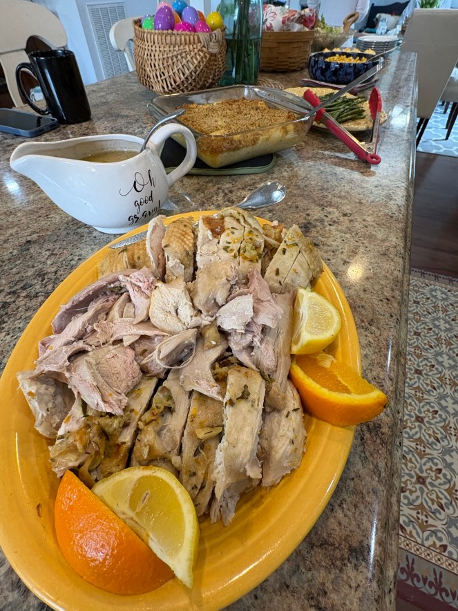 I had a turkey in my freezer that I wanted to roast, but I didn’t want it to taste like the Thanksgiving turkey, so I found a recipe with a Citrus Herb Butter that added a freshness to the flavor of the meat that made it taste like springtime! The gravy I made also had a little citrus flavor, due to adding a little more of the lemon juice to the drippings. So good.