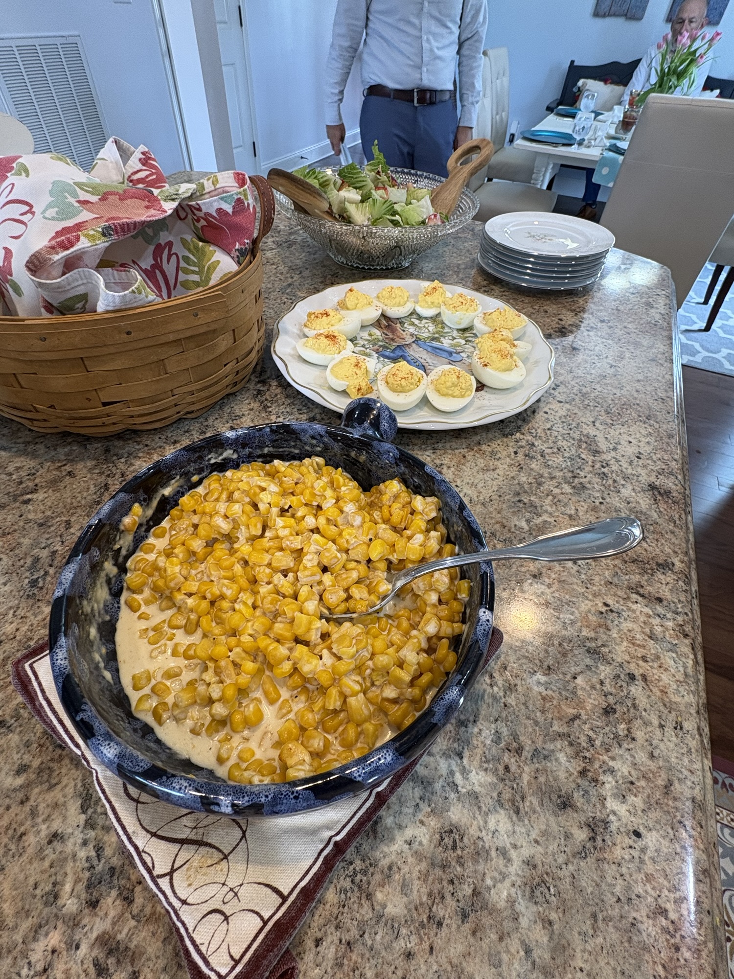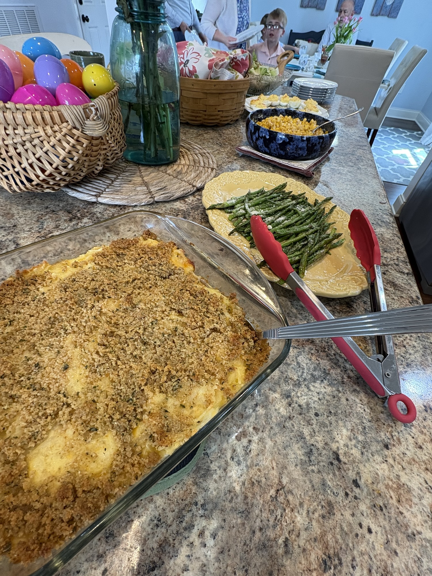 The weather was perfect all day – sunny and warm. We got to enjoy dessert on the back porch – after my grandsons enjoyed hunting for Easter eggs in the yard. To hear their squeals of delight and see their excitement over this yearly tradition adds a little fun to a very special and sacred day.