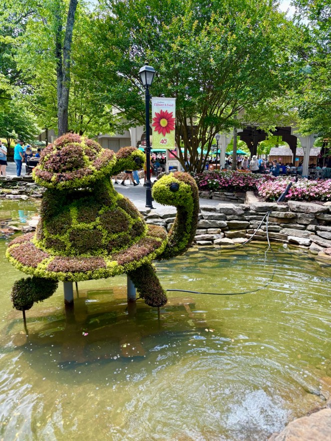 Our recent Staycation was all I hoped it would be, and more! We slept in when we wanted. We ate at simple restaurants or had easy meals at home. We took a two night adventure to a favorite place – Pigeon Forge, both familiar and close. We went to Dollywood and used our passes for the first time this season. The flower and food festival is happening right now and I was mesmerized by all the beauty in the park!