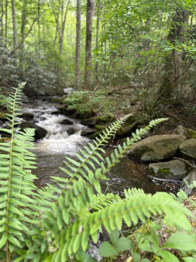 We drove to Roan Mountain and enjoyed the beauty and quiet of the scenery that surrounded us. A flowing stream like this made us just stand and be still. We watched the water rush over the rocks and thought of the Lord’s admonition to “Be still and know that He is God.” These kind of moments can’t be rushed.