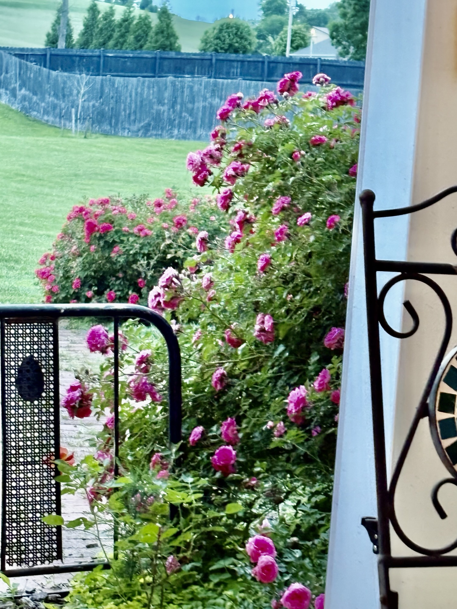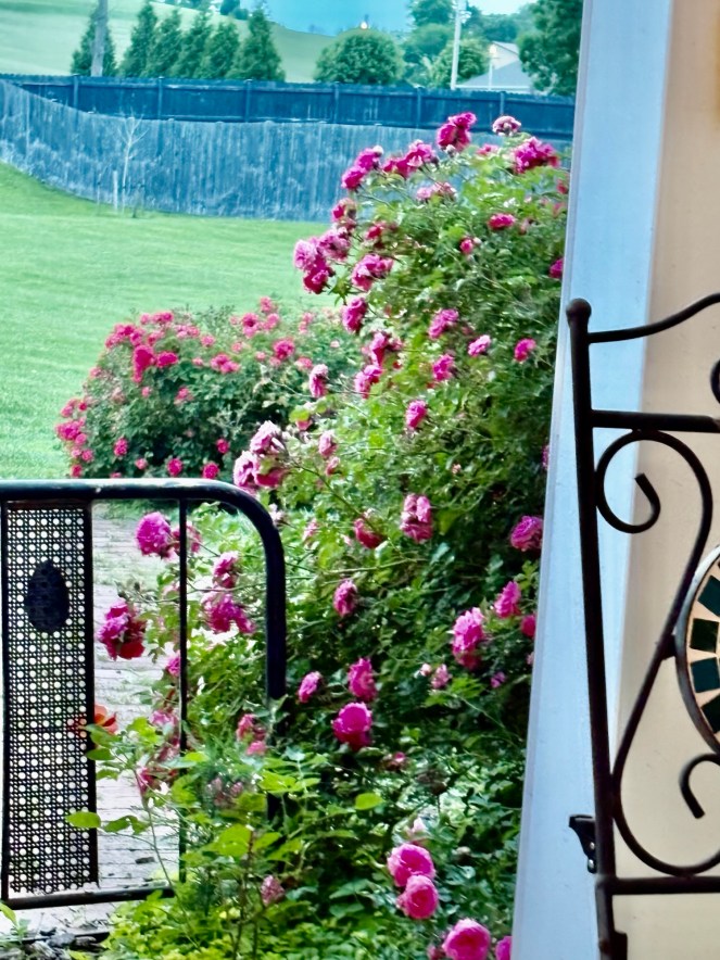 There’s nothing like sitting in the quiet corners of my own house filled with comfy chairs, lamps put in just the right place for reading and ambiance with a cup of coffee on the side table. There’s also the simple joy of sitting out on the back porch on these lovely late spring days, admiring all the roses in bloom and the wisteria swaying in the breeze, knowing we have no where we have to be…only together.