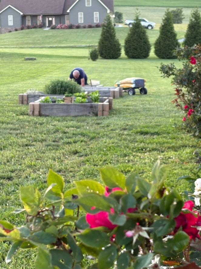 We used one afternoon to work in the yard, adding tomatoes, peppers and cucumbers to our raised beds where lettuce is growing nicely and dancing in the wind like kites in March.