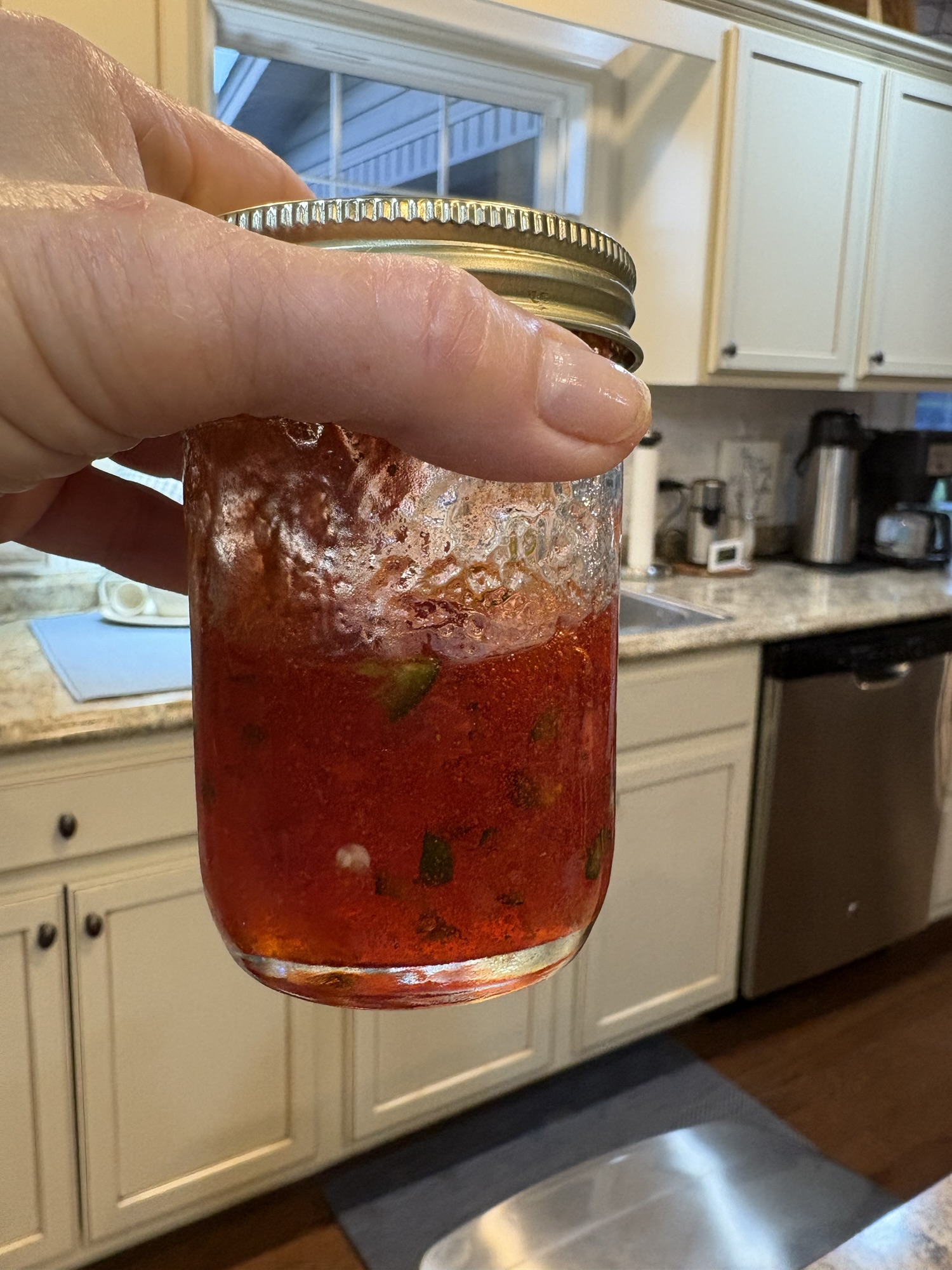 I purchased fresh jalapenos, chopped them up, and added about a teaspoon to a half pint jar of my strawberry jam. I stirred it in and gave it a taste on a cracker. YUM!! There was enough spice to jazz up the flavor, and enough sweetness from the jam to balance the heat!