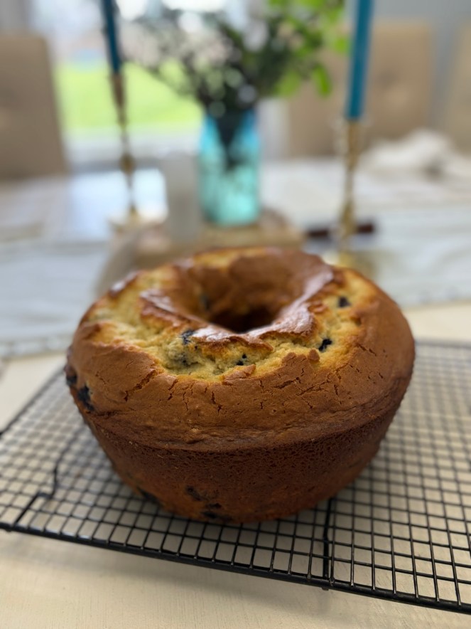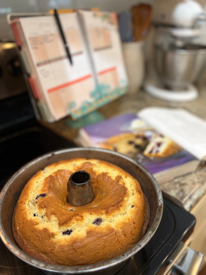 When I had a need last weekend for a dessert for a church gathering, I decided on a southern classic – Pound Cake! However, instead of the recipe that calls for a pound of butter, I went to a tried and true version that we have come to love from Cooking Light! It’s much lighter in fat, and it also includes blueberries, which makes it a perfect summertime dessert!