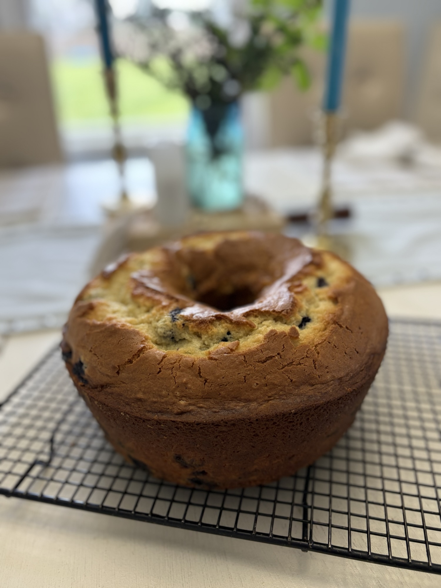 When I had a need last weekend for a dessert for a church gathering, I decided on a southern classic – Pound Cake! However, instead of the recipe that calls for a pound of butter, I went to a tried and true version that we have come to love from Cooking Light! It’s much lighter in fat, and it also includes blueberries, which makes it a perfect summertime dessert!