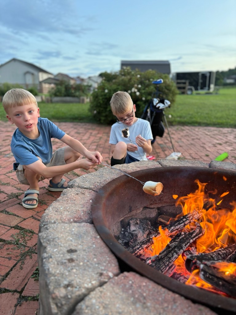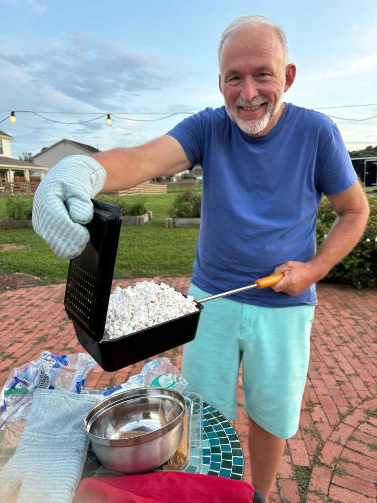 Last Sunday evening our family came over and we made s’mores over our backyard fire pit. We also made popcorn over the fire using a popper that Dale had received from Whitney at Christmastime. It did an amazing job! Every single kernel popped and it was done in about five minutes! I was so impressed!
