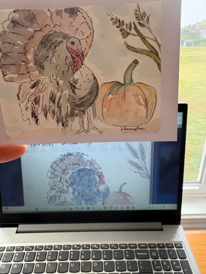 The last fun thing I did on my rest day was a little watercolor picture. I found this pretty turkey picture on Pinterest and used it as my example. I turned my painting into a card that I’ll send to someone before Thanksgiving. Painting feels like a splurge because I enjoy it so much. I’m trying to improve my skills by doing it consistently. One day I’d like to spend the whole day doing nothing but watercolor!