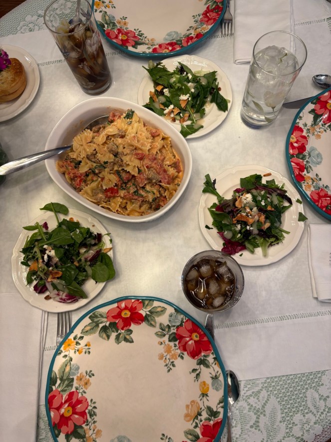 At the end of the week, we took a weekend trip to visit with my mom before our busy traveling schedule starts up next week! We had sweet chats, an errand run, lunch out, and supper in. She let me cook for her one night. It was a blessing to serve her and give her a much needed break. She loves pasta, so I made this easy Creamy Bow Tie Pasta with Italian Sausage. It’s super yummy and a cinch to make.
