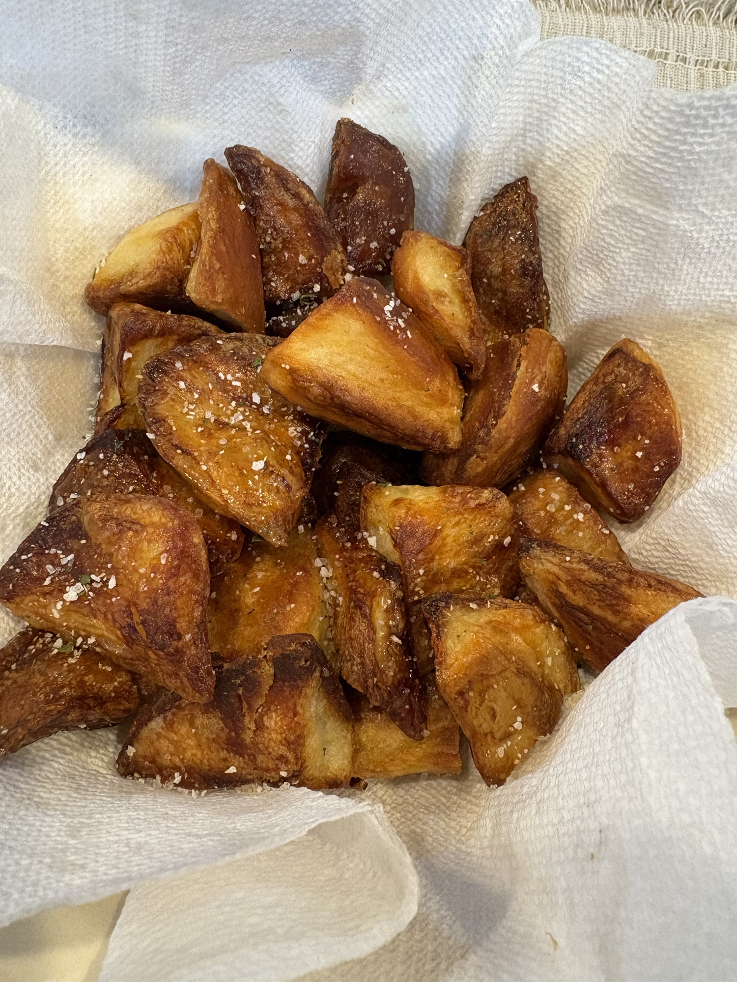 Over the Christmas season, I was introduced to a new potato side dish via a couple of British people I follow on social media. Enter the Roasted English Potato. They require quite a bit of hands-on, but it is worth every minute! They are par-boiled, then roasted in the oven in a bit of oil for close to an hour, turning them every 15 minutes. The result is a crispy outside and a fluffy, tender potato on the inside. Potato Heaven!