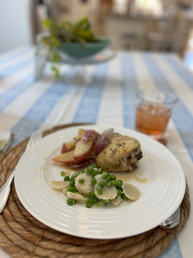 I served the French Peas alongside this recipe for Greek Chicken (so yummy!). It was a happy combination!