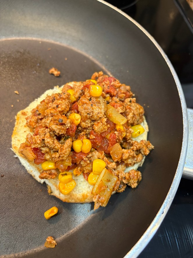 - Add onion, celery and bell pepper and saute’ until tender, 3 minutes. Add turkey and saute’ until browned, breaking up the meat as it cooks, 5 minutes. Add chili powder, basil, salt and black pepper; stir to coat. Add crushed tomatoes, ketchup and mustard; mix well.