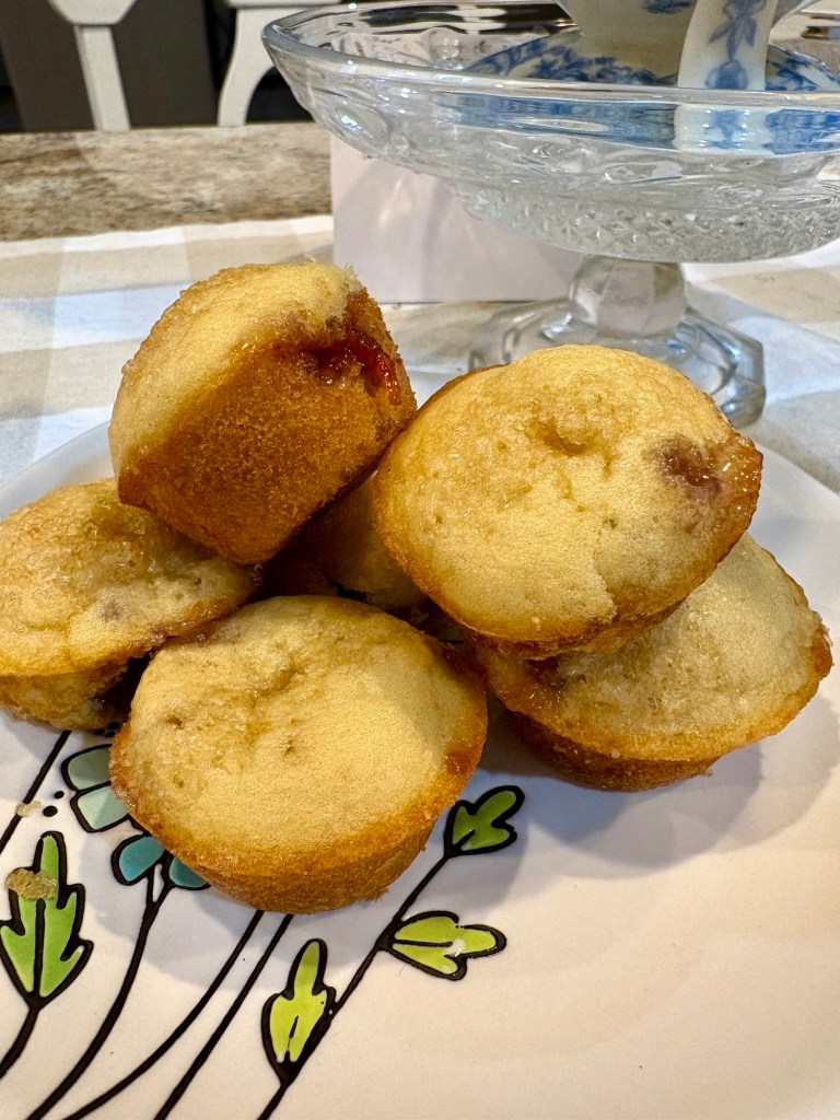 **For the mini muffins, I used a teaspoon of batter, a teaspoon of jam, and then another teaspoon of batter on top. I baked mine for about 10 minutes.