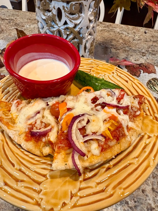 Are there other pizza lovers out there? I thought so!! Recently while chatting with my mom on the phone she asked me if I’d noticed that pizza restaurants don’t really put much sauce or cheese on the pizzas anymore. I had to tell her that I truly had no idea because “I cannot even remember the last time I had a pizza from one of the delivery type pizza places.” “You’re kidding???!!!!” she asked in disbelief. I was serious . We might order pizza once a year out somewhere, but I choose to make it at home instead.