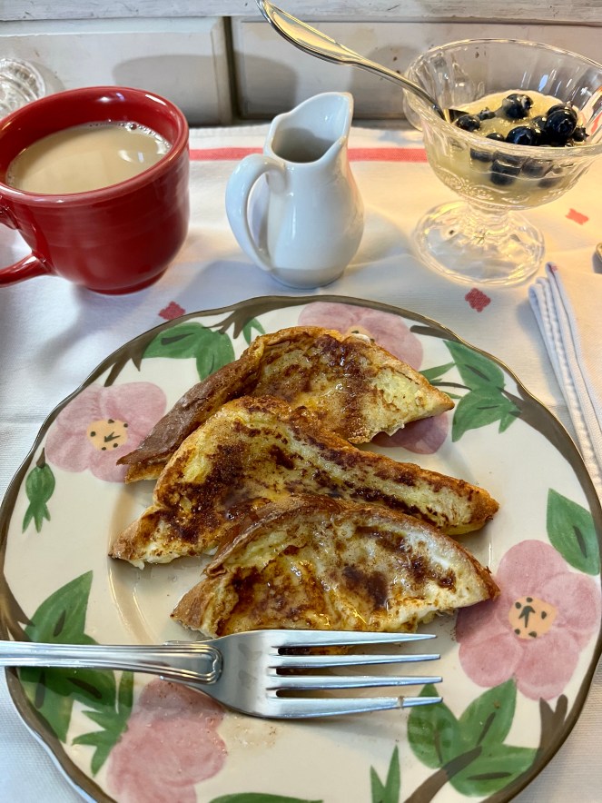 Even if the fare is simple, it’s special when it’s delivered on a tray! My favorite breakfast is either French Toast or Homemade Waffles. That warm syrup dripping down over the golden crispy bread is almost better than birthday cake! Dale has perfected his cooking skills over the years, and breakfast is his best meal! Tip – I try to keep my fridge and freezer stocked with cooked bacon, homemade waffles, fresh bread and fruits. It makes it easy for me to fix our morning meal, but when my husband wants to serve me in that way, it makes it super simple for him. It’s a win-win!