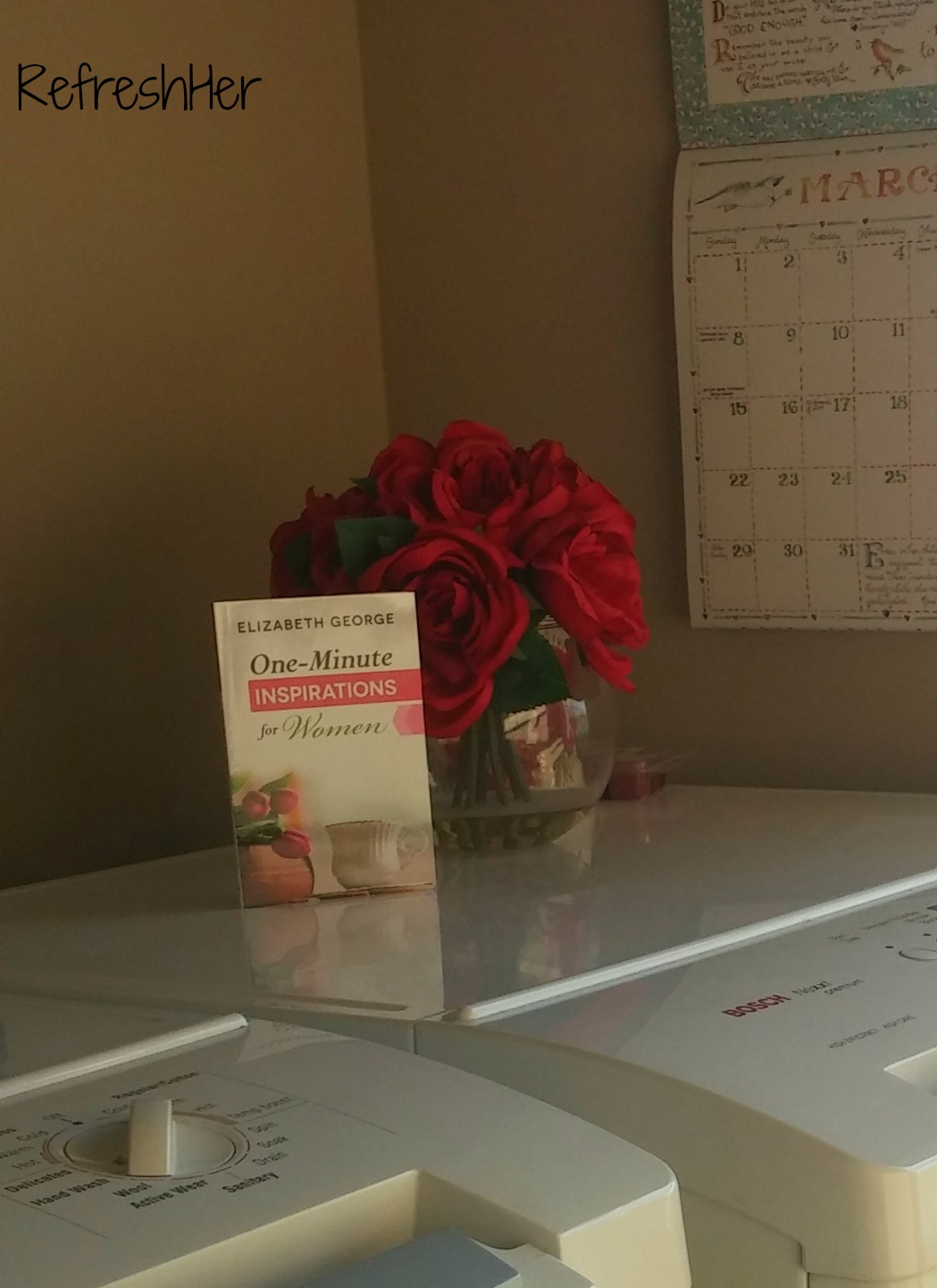 Place devotional books, books of God’s Promises, or other short reads in places where you can stop for a minute and read something from God’s Word. Put those kinds of books in a basket in the bathroom (if you’re fortunate enough to be in there alone!), in the laundry area, or in the car. Read something that will encourage your heart for that minute or two.