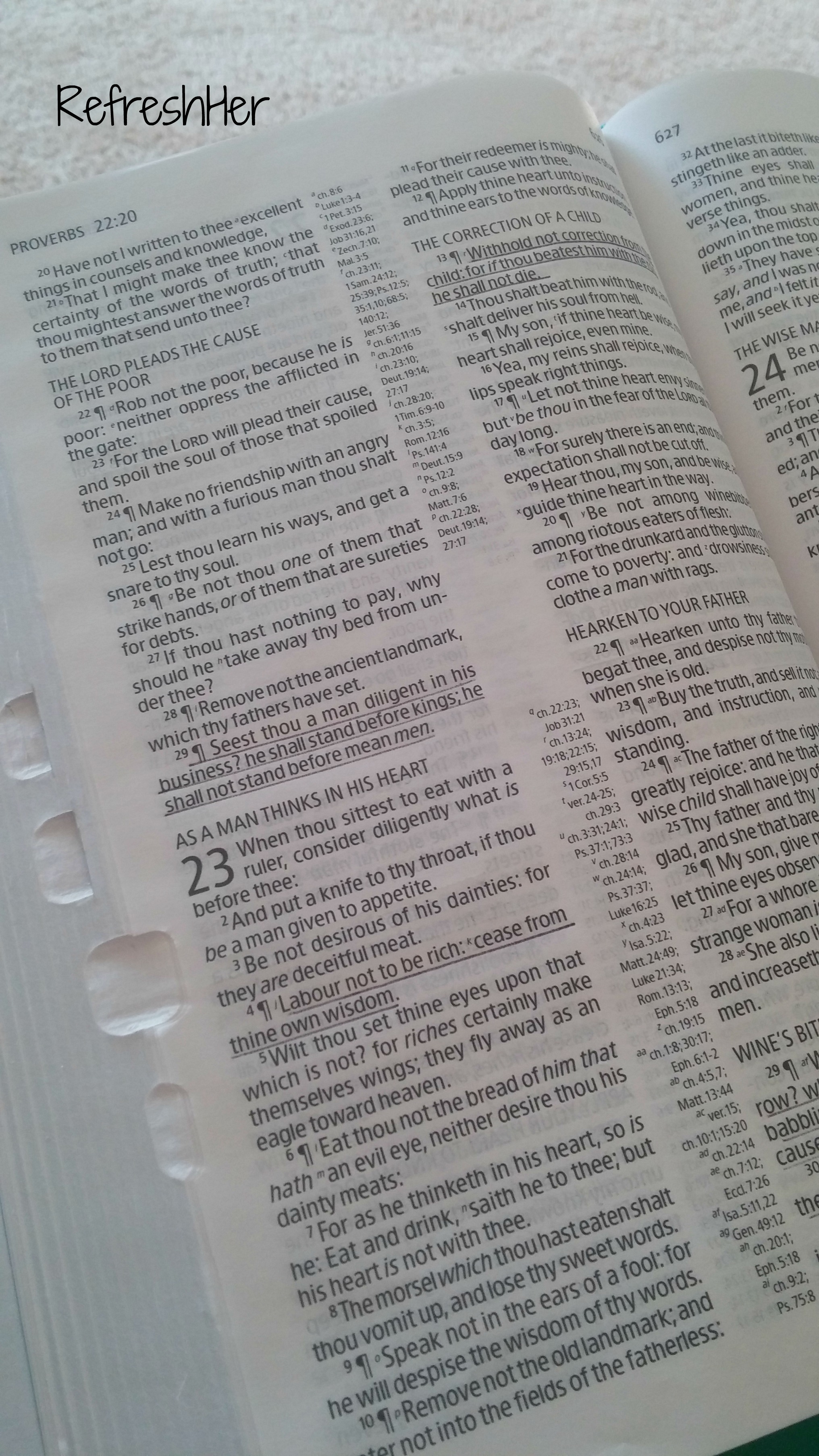 Read the Proverb for the day. It probably only takes about five minutes to read a chapter. Highlight the verse(s) that jump out and speak to your heart and needs.