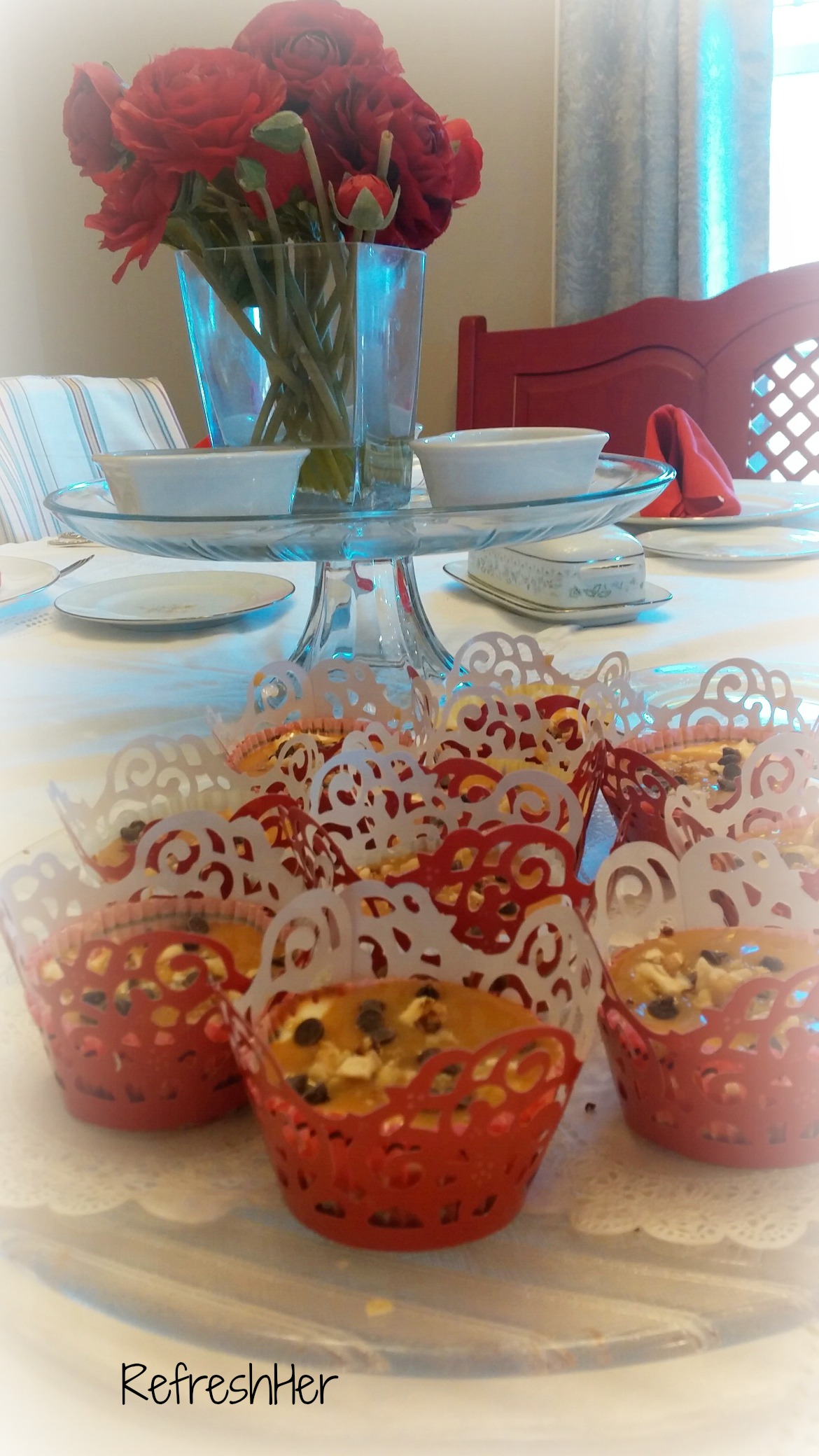 Valentine’s Day begs for a special treat! Since the 14th is just days away, I wanted to share a simple treat that is served up in individual portions. Years ago I made a delicious treat – Salted Caramel Cheesecakes from The Rustic Willow Food blog. These were so delicious and what could be more “Valentines-y” than Cheesecake wrapped in a red wrapper?!
