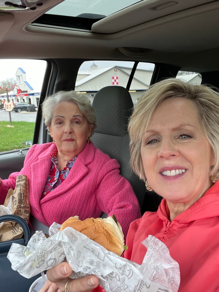 We enjoyed lunch at the best local fast food place, we did a little shopping, we visited the her great grandsons, and we ate meals upstairs in our quiet family room where we lingered and chatted. We taught her to play Rummikub and she caught on quickly and competitively! 😊