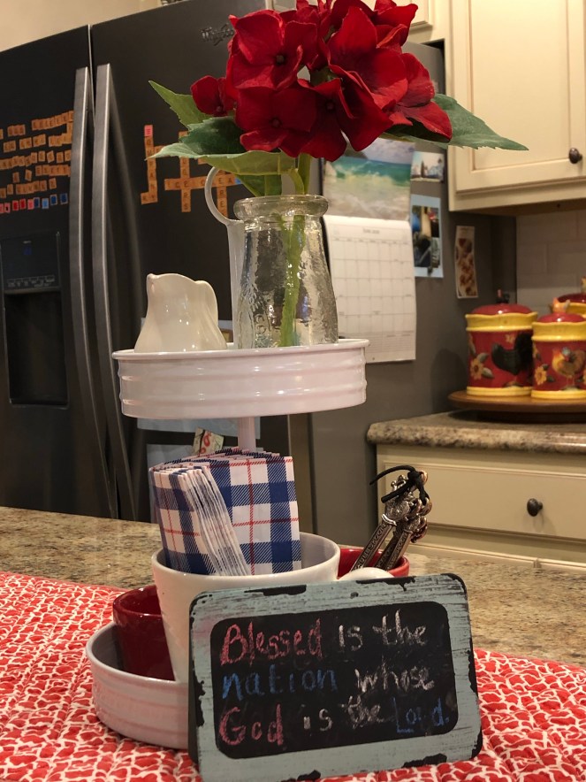 I’ve always been a fan of seasonal decor. I have scaled back in how much I use, but I still love to add a touch of the upcoming holiday around my home. This week it was time to pull out my patriotic things and add a few touches. Here’s what I added…